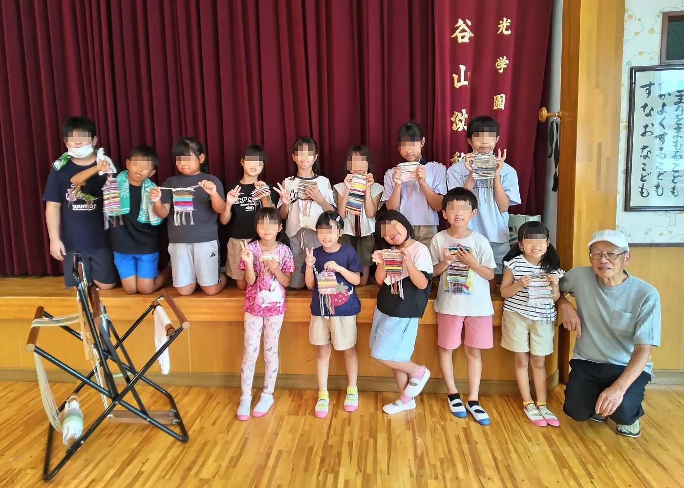 児童クラブで織物体験教室 ワークショップ報告 2025.09.03 2025/8/5(火)この日は、谷山にある幼稚園に併設の児童クラブにて、織物体験教室を開催しました。(※画像はクリックまたはタップで拡大します) 完成した織物作品を持って、皆で記念写真!1年生~6年生の皆さん、とっても元気で可愛い子たちばかりです。 今日の記念に、皆さんからメッセージカードをいただきました。嬉しいです、大切にしますね。皆さん、今日は参加してくださって本当に有難うございました!