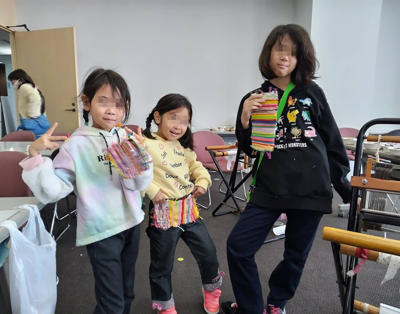 「見て見て!これ、わたしが織ったんだよ♪」