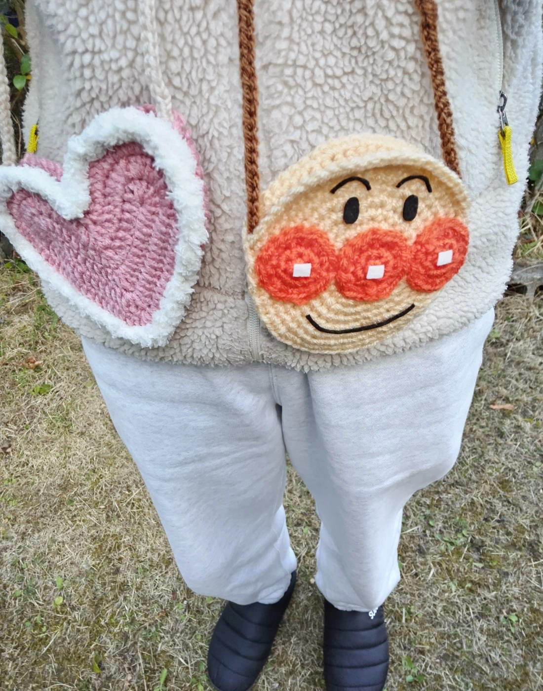 こちらの可愛いポシェットは、手編みで作られたとのこと!